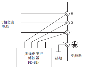 [无线电噪声滤波器的连接] 连接至变频器输入侧。