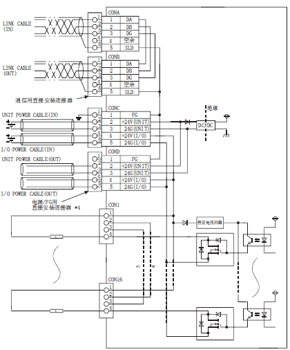 公共端方式:16点1公共端(直接安装连接器型1线式)