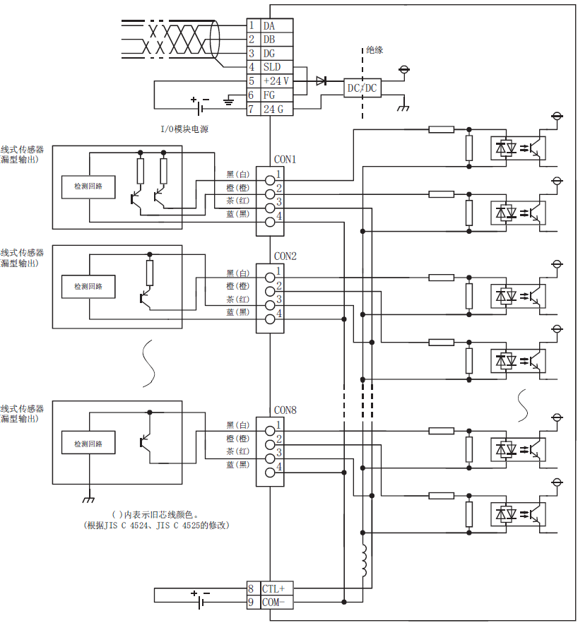 公共端方式:16点1公共端(直接安装连接器 4线式)