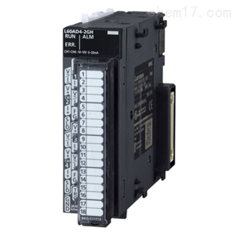 L60AD4-2GH-CM三菱L系列PLC模拟量输入模块参数说明:4通道,输入DC-10~10V/DC0~20mA,数字输出0~32000/-80000~32000,转换速度40μs/2通道,18点端子台
