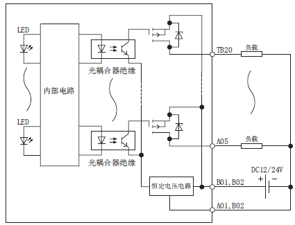 公共端方式:32点1公共端(公共端端子:B01、B02)