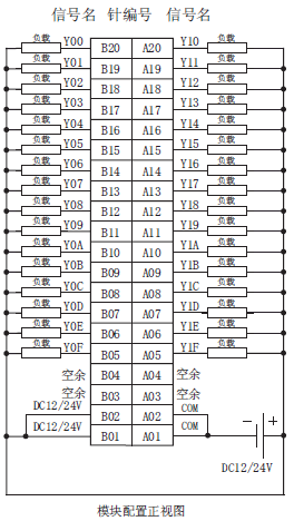 公共端方式:32点1公共端(公共端端子:A01、A02)
