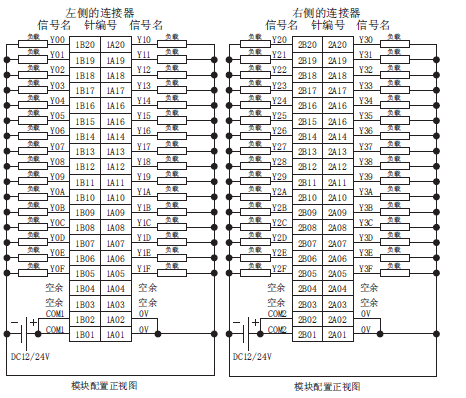 公共端方式:32点1公共端(公共端端子:1A01、1A02、2A01、2A02)