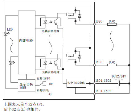 公共端方式:32点1公共端(公共端端子:1A01、1A02、2A01、2A02)